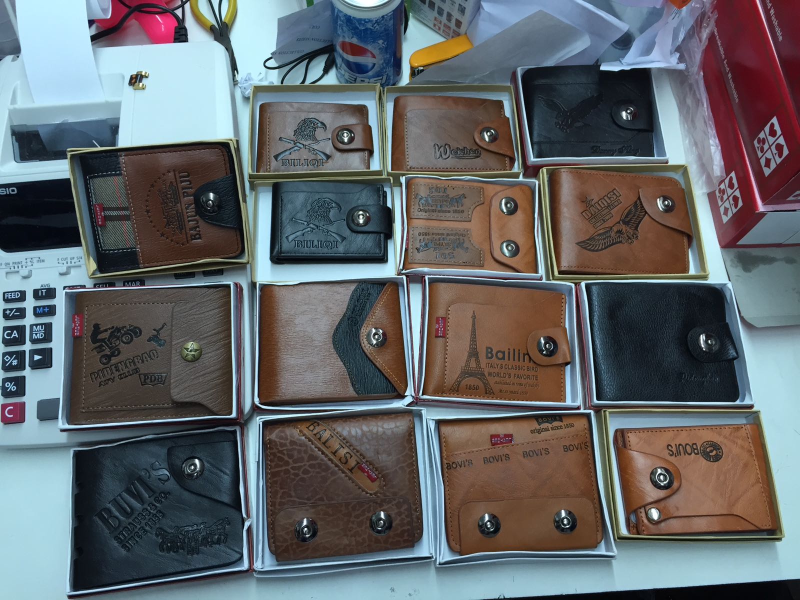 ארנקים גבר עם קופסה הרבה דוגמאות